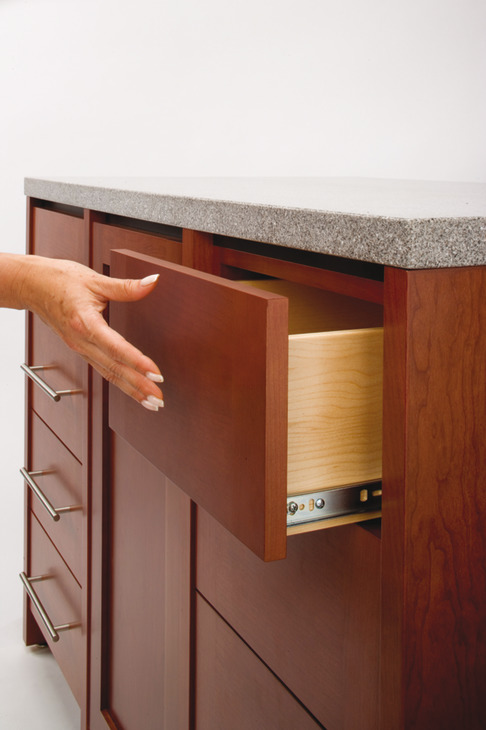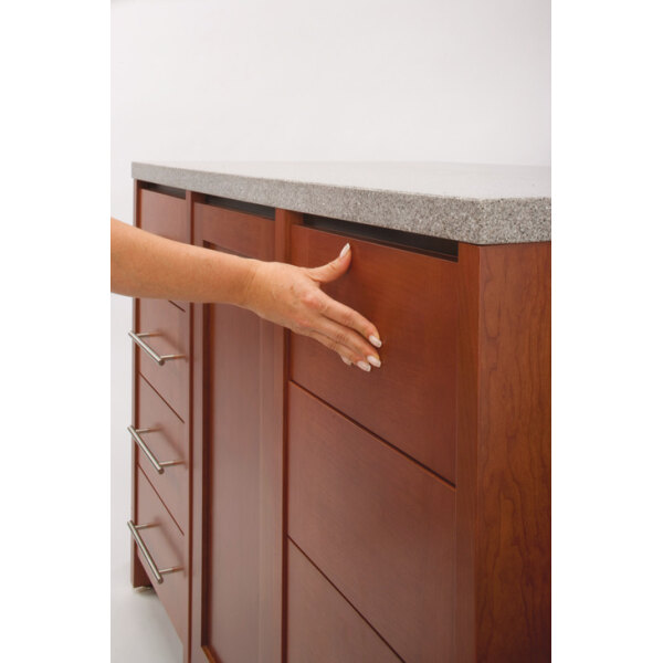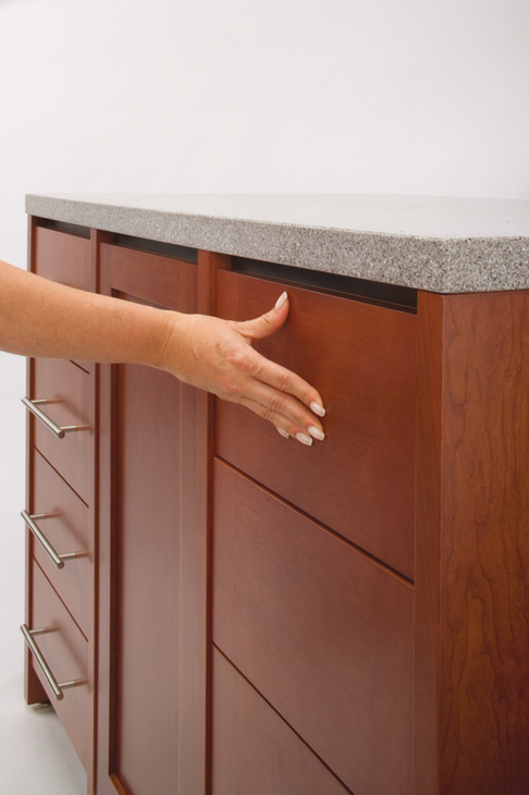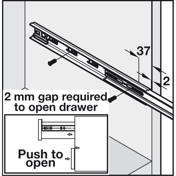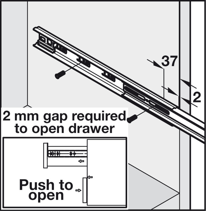 Also for use in cases where the furniture design requires drawer fronts without handles and knobs