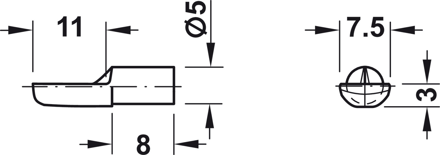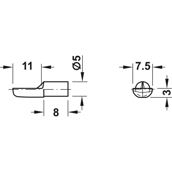 Shelf Support, Plug in, for Wooden Shelves and Ø 5 mm Hole with Anti-Slide Feature